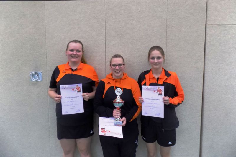 Im Einzelwettkampf der Damen spielten Inga, Bente, Gisa, Lena und Laura im Ranglistenspielmodus gegeneinander. Dabei war lange nicht absehbar, wer die Gruppe anführen würde. Nachdem Bente im Auftaktspiel in der Verlängerung gegen Laura verlor, gewann sie im 5. Satzgegen Gisa, musste sich dann jedoch in Verlängerung mit 1:3 Lena geschlagen geben. Ebenso erging es Lena, Laura und Gisa, die letztlich mit einem Spielverhältnis von 2:2 dicht beieinander standen. Mittels des besseren Satzverhältnisses von 8:8 konnte Lena hinter Inga den 2. Platz belegen. Bei Laura und Gisa konnte mit einem Verhältnis von 9:10 nur der direkte Vergleich Gewissheit bringen, in welchem sich Gisa durchgesetzt hatte. Somit hat Vereinsnewcomerin Inga gleich den 1. Platz und damit den Wanderpokal für sich gewinnen können, dahinter Lena auf dem 2. und Gisa auf dem 3 Platz.